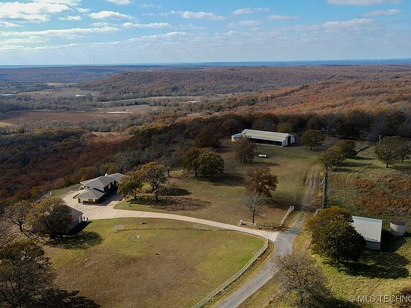 A Slice of Heaven from an Eagles point of view 340 Acre Legacy Ranch Estate Near Tulsa. Well out past Tulsa where the red dirt rolls, You'll find breath-taking views that will fill your soul. 30 min from town & 20 min from Tulsa Hills there’s a place on a map where you'll know how heaven feels! Where the sunrise whispers & wildlife is seen; deer, turkey, scenic trails make for a hunter's paradise & a nature lovers dream. 340 Acres of Life You Can’t Fake, a True Legacy Ranch Estate. Panoramic views w/a mountain sunrise. Million dollar skies stretching out for Miles wide. Where the whitetail roam & the tall pines sway, The wind tells a story only cowboys say. From 80% timber to that 20 Meadow green, it’s a kind of place you step into and finally can breathe! A slice of Heaven from an Eagles point of view, got a shop, horse barn made working & play, a ranch built strong for the modern-day. You’ll See eagles drifting, Feel stillness speak, Hear the heart of the land beating every day of the week! It’s a hunters Haven, a quiet kingdom where the deer stand proud like they know you’ve come. Every Trail, Every Ridge, Every Sunset Hue, this land's got a story calling for you. If you want peace, this land has acres of tract, if you want views, there’s mountains out back. If you want a legacy? Well partner it’s true, You can build a whole life on this stretch of blue! 30 Mi S of dtwn Tul. 4 Bds/3 Bth, 3744 SF (AP) w/pellet Stv/ basement, 180 degree panoramic views, 125ft of windows, 200ft elev Change. Umbrella Home w/X wide eves keep it cool in the summer/warm in winter. prop. sourced stone, Priv Paved Rd, New Roof/Hot Wtr Htr. Newly painted 30x40 Det Gar w/full elec+opnr, Add'l 30x40 gar/shop w/elec+ofc, 70x125 open barn w/elec. 6000 Gal Water Stor Tank, Appx 5 ac cleared land w/enamel painted pipe fence, 80% Wooded 20% open Pasture for cattle/Horses /Rec, 4 Stocked Ponds. Deer, Turkey, & abundant wildlife. Premier Hunting Getaway, Recreational Retreat, Full-Time Residence
