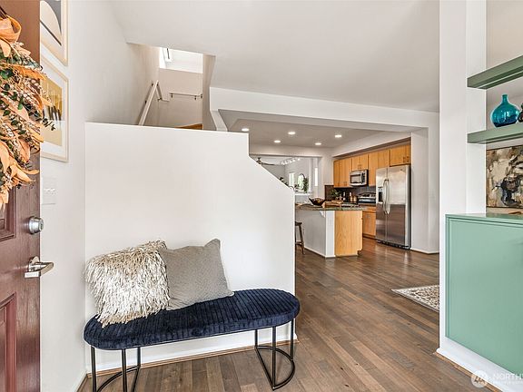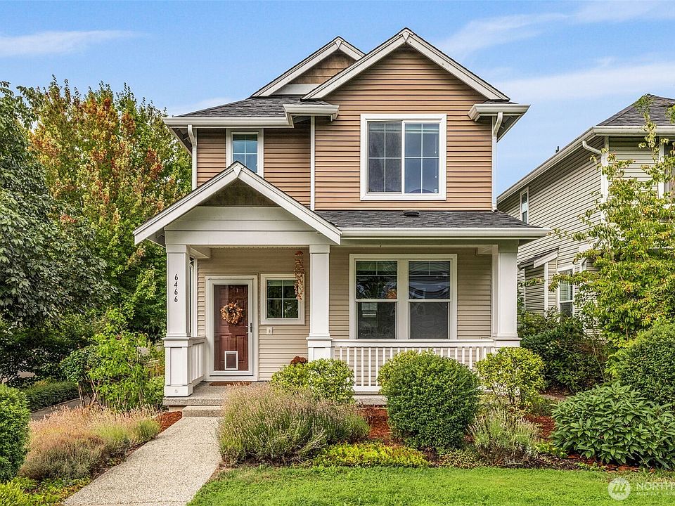 Step into this sunlit retreat, set on a large corner lot — a rare combo for this neighborhood. The detached home balances privacy with community charm. The main level features soaring ceilings, abundant natural light, and an open kitchen with oversized island, stainless appliances, and ample storage, all flowing seamlessly into the dining and living areas anchored by a cozy fireplace. Upstairs, three bedrooms include a spacious primary suite with walk-in closet and private bath. Outside, enjoy a fully fenced backyard with patio, apple trees, grapevines, and your own strawberries and blueberries. A detached garage adds both security and convenience. With an easy commute to downtown Seattle, this turn-key home blends comfort and lifestyle.