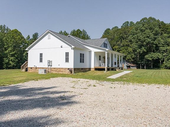 Welcome to country living in peaceful, Surry County. This one year old, 2,500 sqft modern farmhouse features board and batten siding, a welcoming covered front porch, screened in back porch and another covered porch on the back as well. Inside you will find an open concept floor plan allowing open views from the expansive kitchen through the dining and family rooms, with waterproof LVP wood floors throughout. The kitchen features solid counter-tops, an over sized island with built in seating, stainless steel appliances, a four burner gas range and an over-sized pantry with sliding barn door. Just around the corner from the kitchen you will find a tile doggy shower, large utility room and private home office. The family room offers plenty of room for entertaining as well as a gas log fireplace. Bedrooms two and three each offer an en suite bath and well sized closets. The master bedroom holds an over-sized walk in closet and master bath with dual sinks and a tranquil, tile walk in shower. Exterior property features include three outbuildings, roughly four acres of cropland, three acres of yard/pasture and 11 acres of timber, including swamp and a duck hole. Horses welcome!