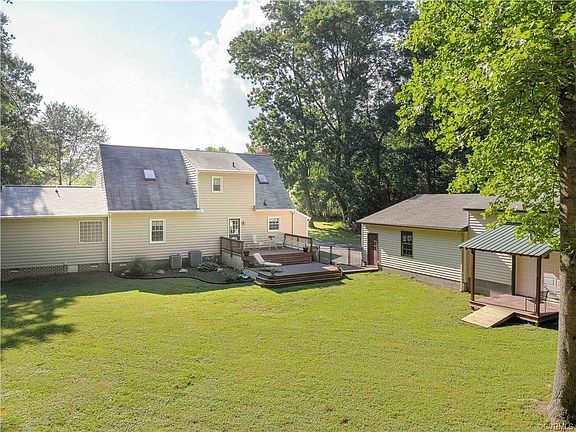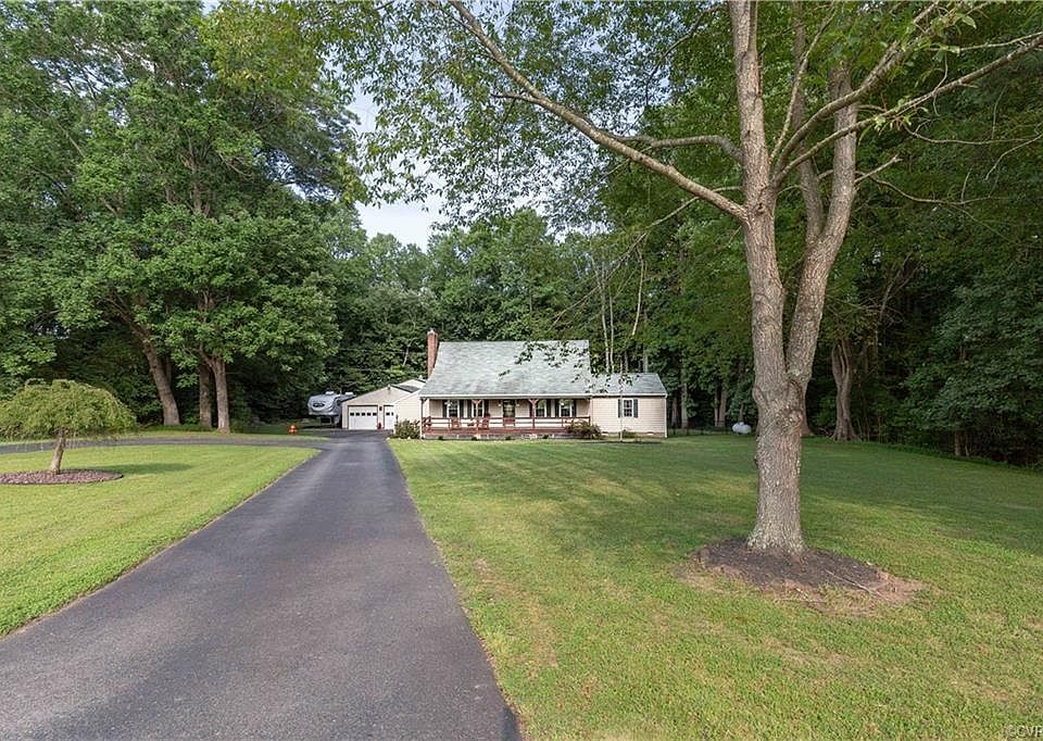 AMAZING, MASSIVE, DREAM 49' x 31' GARAGE!!! First floor Master, 4 BEDROOMS, 3 FULL BATHS home on a full ACRE LOT! Beautiful covered FRONT SITTING PORCH with SWING! TWO TIERED DECK overlooking LARGE FULLY FENCED REAR YARD, and AMAZING 4+ CAR GARAGE with Front and SIDE entry. GARAGE HAS IT'S OWN SIDE, COVERED PORCH!! Eat-in Kitchen with BREAKFAST BAR ISLAND with DOVETAIL DRAWERS, TILE BACKSPLASH, overlooking Dining Area with BRICK HEARTH FIREPLACE, EXPOSED BEAMS, and chair rail. First Floor Master Private Bath with JETTED SOAKING TUB, Ceramic Tile Floor, Walk-in Closet, EASY WALK-IN SHOWER, Recessed Lighting, Natural light, and Double Vanity! 300 GALLON PROPANE TANK-- SHOP YOUR OWN PROPANE TO SAVE $$$!!! Propane for Whole Home 17kW AUTOMATIC GENERATOR AND GAS LOG hookup! LARGE CIRCULAR DRIVEWAY. 40 GALLON EXPANSION TANK FOR WELL! 6 Foot Firepit in rear yard. All on a quiet road. 23 minutes to DOWNTOWN RICHMOND, 30 minutes to FORT LEE, and 43 minutes to Williamsburg! Verizon Fios and Comcast both available