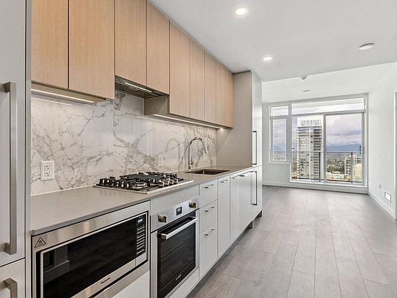 Welcome to The Standard by Anthem. A brand-new thoughtfully designed residence in the heart of Metrotown. This stunning 1-bedroom home offers breathtaking mountain views, soaring 9' ceilings, wide-plank laminate flooring, and a premium Bosch appliance package in a sleek, contemporary kitchen. Stay comfortable year-round with air conditioning. Residents enjoy an exceptional collection of amenities, including indoor and outdoor lounges, a game room, guest suite, fully equipped gym, and a relaxing sauna. Perfectly situated just steps from Metrotown SkyTrain Station and Metropolis at Metrotown, this prime location offers effortless access to shopping, dining, and transit.