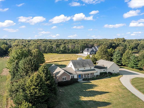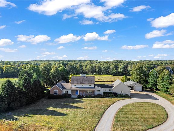 Discover the perfect blend of space, comfort, and natural beauty in this stunning 4-bedroom home set on 5 serene acres in the sought-after Monticello School District. Boasting over 3,000 square feet of finished living space, this home features vaulted ceilings and an open floor plan ideal for both relaxing and entertaining. The main level offers a formal dining room, a cozy living room with a fireplace, and an expansive sunroom filled with natural light from skylights and a wall of windows overlooking the picturesque backyard. Upstairs, enjoy additional living space with a spacious family room and a private office. The full unfinished basement offers endless potential with an egress window and a finished full bathroom already in place. Additional features include an additional detached garage with carport, natural gas, fiber internet, whole house vacuum system, and only half mile away from the North entrance to Allerton Park.