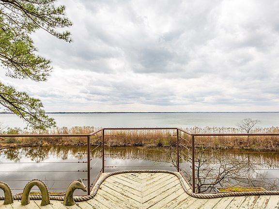 Spectacular views and breathtaking sunsets! With two freshwater ponds fronting the river and 12.86 wooded acres, this property is truly an oasis. On the upper level, this home boasts an open living/dining area with woodburning fireplace and stone hearth and a kitchen with waterside breakfast nook and center island. The upper level also offers a master suite with huge views and separate library /office, additional ensuite bedroom, powder room and laundry room. Take the elevator to the lower level where you will find a complete living space with bedroom, bath and family room with kitchenette. This level is also accessible via the two car attached garage. A second two-bay detached garage is perfect for extra storage and can house a boat with an 11' ceiling height in one bay. This propertry features the best that the outdoors has to offer and invites you to enjoy the scenery from the multiple balconies, huge windows and private grounds.