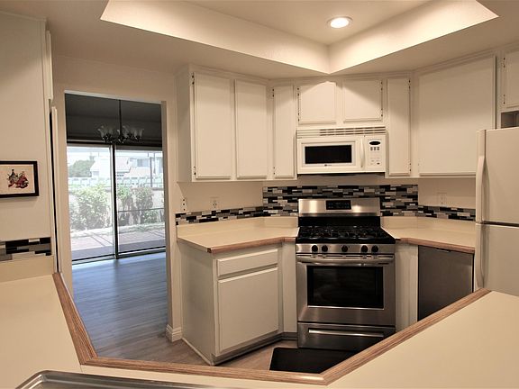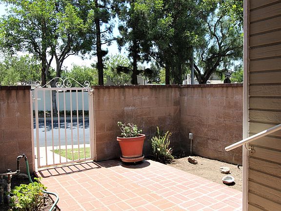 Single story, 2 bedroom condominium. Private front courtyard. Large living room with wood style floors and a fireplace. Sliding doors open to a covered patio and yard area. The kitchen has a stove, microwave and dishwasher. A refrigerator is also available. Eating area plus bar/counter seating off the kitchen plus there is a large dining area at the end of the living room. 2 bathrooms. Laundry closet with a washer and dryer available. 2 car garage. Community pool. Mountain views. Located north of Baseline, west of San Dimas Canyon Rd.