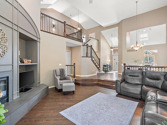 Nestled in a picturesque setting this 1 1/2 story townhome offers a blend of luxury, convenience and natural beauty. Located on a peaceful lot with stunning views of cascading waterfalls. A meticulously maintained home with an inviting open floor plan. Main level bedroom suite with new carpet and paint has sitting room with fireplace, walk in closet, newly remodeled bath with large walk in shower and double sinks. Kitchen includes newer stainless appliances, 2 pantries, and dining area, and new oak flooring . Open concept dining and family room with natural lighting has new oak floors and paint. Fireplace with built ins for a cozy atmosphere. Completing the main level is a laundry room, half bath and additional closets. The newly carpeted stairs with updated spindles takes you to the open loft and 2 additional bedrooms and a full bath. New flooring and paint in every room. Large basement offers potential for additional living space for a home theater, gym or recreation room. Seller has updated or refreshed every inch of this home. Sunroom leads to a deck overlooking the pond with waterfalls and fountains. Imagine relaxing to the soothing sounds of the water.Only 22 units in this very special subdivision that is close to shopping , highways and restaurants.