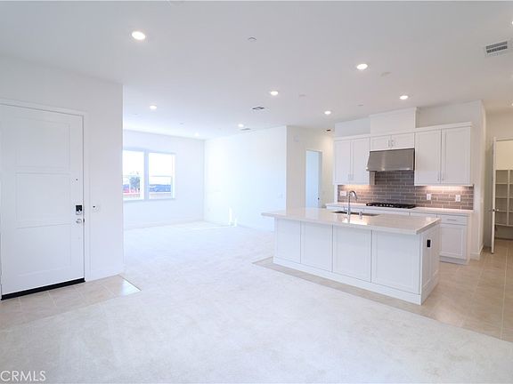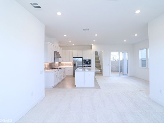The modern chef's kitchen boasts elegant quartz countertops, high-end stainless steel appliances, and an expansive center island perfect for entertaining. The bright and airy dining and living areas create a seamless flow ideal for both relaxation and gatherings.