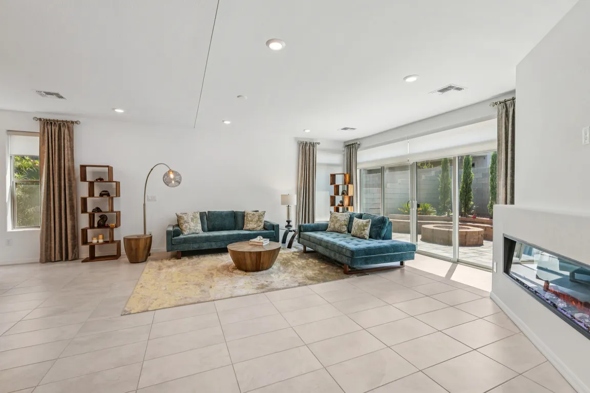 Modern 4bedroom, 4bath home with nearly 3,000 sq. ft., built in 2023 and located in desirable Silverado Ranch near shopping, dining, and the airport. The open-concept layout features sleek tile flooring, a spacious living room with a modern fireplace, and a downstairs secondary primary suite. A wide sliding door with Automatic ...