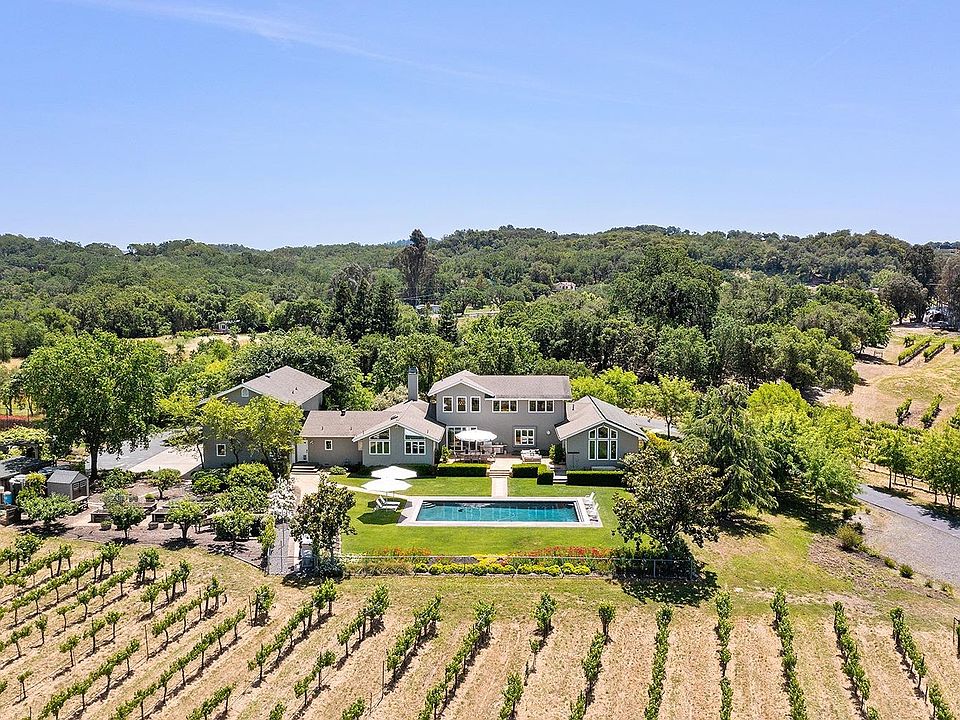 Situated at the entrance to the famed Alexander Valley, this very large California contemporary style home set on a 5-acre level lot will delight you with its generous rooms, high ceilings, open beams and magnificent views. The house boasts a dramatic ensuite bedroom, 2 additional bedrooms, 5-1/2 baths and two separate offices. A newer wing with oversized media room and additional guest quarters round out this spacious home. With a stunning gourmet kitchen and walk-in pantry, pool, spa, tennis court, pool table, ping pong, and 3 car garage with wine cellar this home has it all. The grounds offer a relaxing Mediterranean garden in and around the house; fruit orchard, flower and vegetable gardens; 2.3 acre vineyard with Merlot and Cabernet Franc varietals; and to the south, a small oak studded knoll with vestiges of memorials from a bygone era. All this just 2 miles from Montage Resort and 4 miles from the restaurants and shops of Downtown Healdsburg with superb paved roads all the way to the house. This estate will be ideal for large families, multi-generational living, a glorious country home for entertaining friends and sports enthusiasts. All this in a healthy natural habitat. It is truly a country to town property.