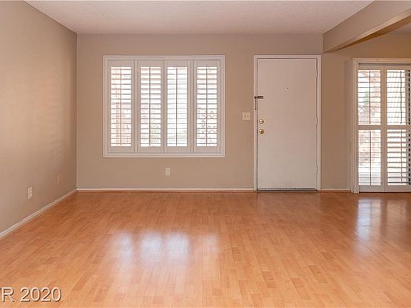 Great location in the community. Great location in Henderson. 2 bedroom 2 car attached garage with entry to the home. Plantation shutters, washer/dryer upstairs. Wonderful enclosed patio area. This community has a separate RV parking area, 3 pools and a tennis court. The 2 bedrooms upstairs share a bathroom.