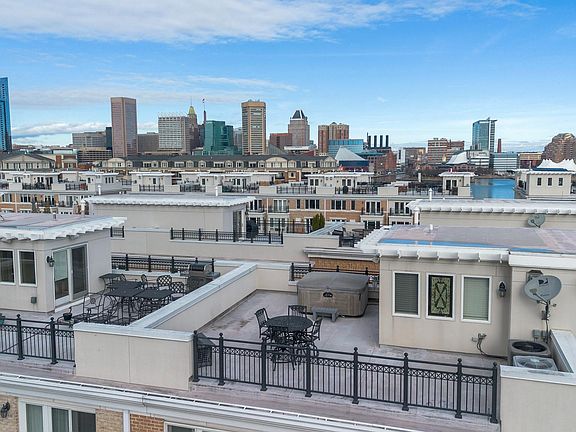 Welcome to 647 Ponte Villas, the epitome of luxury living on the prestigious and gated south pier of "The Pier Homes at Harborview," Baltimore. Soak in the sun, enjoy the views from multiple balconies, and love life with premium outdoor space on the expansive rooftop level. This private, former model home near the end of the pier showcases designer touches and unparalleled water views, epitomizing the pinnacle of waterfront city living. Inside, gorgeous hardwood floors and crown molding imbue elegance, while a 5-level glass commercial-style elevator connects each floor with sophistication. The gourmet kitchen is a chef's delight, featuring high-end appliances and custom details for cozy dinners and lavish entertaining that opens into a spacious dining and living room with water views from every angle. Blending luxury and comfort, the grand main bedroom suite occupies an entire level, featuring a sitting area, built-ins, a dual-sided fireplace, a spacious walk-in closet, and leads into a spa-like bathroom with a custom shower, separate bath, and double vanities. The experience peaks with a spacious rooftop level equipped with a wet bar and hot tub, offering panoramic city vistas—ideal for entertaining or tranquil nights. The fourth floor offers a family room, two bedrooms, and a bathroom, ensuring space for everyone. A 2-car garage and a fourth bedroom on the ground level complete this exceptional offering. Located on the waterfront promenade, it is a nice jog around the harbor or a short walk to your favorite restaurant. Built with impeccable craftsmanship and meticulous attention to detail, your waterfront hideaway has numerous community amenities, including a fitness center and an outdoor pool. 647 Ponte Villas isn't just a residence—it's a lifestyle of luxury, comfort, and unrivaled views, promising the best of Baltimore living. Watch the drone video virtual tour & download floorplans.