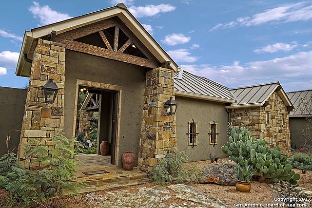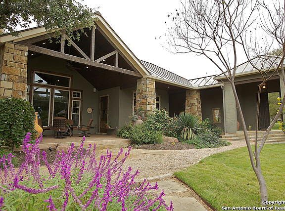 Wildly peaceful country elegance describes this masterfully built custom home. Featuring custom knotty alder doors & cabinets, granite tops, exposed trusses, high ceilings in an open plan. The 31 acre tract sports huge white oaks, elms & live oaks in grassy pastures with very little rock. Excellent horse property! The guest cabin is approximately 600 sf with 2 bedrooms & a bath with full kitchen. The fully irrigated vineyard/orchard is high fenced & has a good start towards producing sweet fruit!