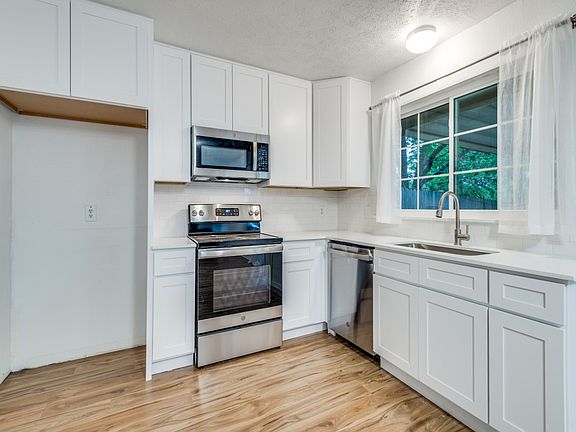 Prime Lewisville Location! Walk to Lewisville HS and Sun Valley Aquatic Center! Welcome home to this completely remodeled and turn key property! It is stunningly updated with today's colors and finishes, yet still has the original charm preserved. 3 Cozy bedrooms each featuring a walk in closet! Both baths have been updated as well featuring solid surface countertops, Modern mirrors with lights and updated tile. The living room is spacious and has a wood burning stove! The kitchen has been completely redone with SS appliances, subway tile backsplash and solid surface countertops. There is a pretty view of the expansive and treed backyard and extended covered patio from the large kitchen sink. Newer laminate wood-look flooring is easy to clean and draws you into this lovely home. Newer windows provide a beautiful look coupled with the benefits of energy efficiency. The outdoor patio will be a perfect place for relaxing or having a barbeque this fall. The front of the home is beautifully landscaped and features a huge pecan tree. No HOA fees and conveniently located near restaurants, schools, library, aquatic center, and major roads. Move in Ready! A real gem!