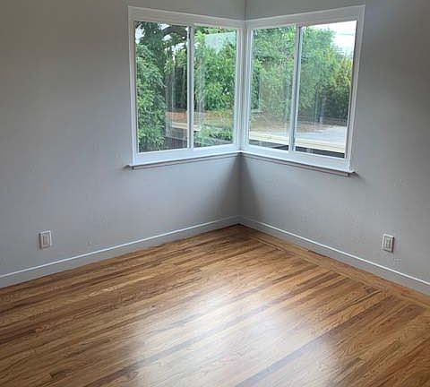 Completely renovated two bedroom apartment features brand new wood flooring, a large kitchen with new appliances, and in-unit washer and dryer. Walk to downtown Mountain View shopping, dining, live entertainment. Sunday morning Farmer's Market at the train station, Saturday evenings stroll through town and sample the amazing variety of wonderful restaurants! Oh, and the apartment is GREAT too Large 950 SQFT, hardwood floors throughout, good size bedrooms, large living room, laundry room inside the apartment. Large 2 Bedrooms, 1 Bathroom in a fourplex (~950 sq. ft.) Large kitchen and bathroom Kitchen has all new dishwasher, gas stove, fridge, microwave, and garbage disposal Located a walk to downtown Mountain View Walk to library, Performing Arts Center, Farmers' Market, restaurants and shops Close to all transportation modes: Caltrain, Light Rail, and Bus Close to major shopping centers: Trader Joes, Safeway, Target, Whole Foods, etc. Storage unit and off-street parking space (carport garage) Light and bright with lots of double-pane windows Water/sewer/garbage and gardener paid by landlord An abundance of closets for your storage needs Water/sewer/garbage and gardener paid by landlord. Renter pays gas and electricity. 12-month lease. Deposit, first and last month rent is collected at signing.