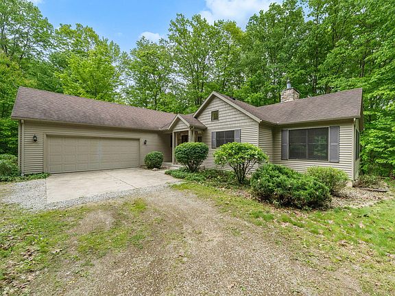 Nestled on 9+/- beautiful wooded acres near all-sports Shavehead Lake, this spacious 4-bedroom, 3-bath home offers the perfect blend of privacy, comfort, and outdoor adventure. Looking for a place where you can hunt, fish, ride ATVs, or build a pole barn, or even an additional home? You don't have to compromise. This property has it all. Set back on a private, gated drive, the home features 3,080 square feet of finished living space in a peaceful, wooded setting. On the main level you'll find hardwood floors, an open-concept kitchen and living area with soaring14-foot cathedral ceilings, a dual-sided fireplace, and sliding glass doors that open to a large deck, perfect for relaxing or entertaining. A cozy sitting room with three walls of windows brings the outdoors in. The primary suite is a peaceful sanctuary with a spacious ensuite bath and walk-in closet. A second main-level bedroom also enjoys an adjoining full bath and easy access to the laundry room. The newly finished walkout lower level adds even more flexibility, with a large family room, two additional bedrooms, and a full bath ideal for guests or extended family. This is more than a homeit's an estate, a retreat, and a chance to live immersed in nature without sacrificing comfort or convenience. It's just 2 hours from Chicago and 40 mins to South Bend, IN. Adjacent land is also available for purchase including lake frontage on gorgeous Shavehead Lake!