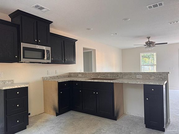 Spacious lot, close to half an acre! Step into your brand-new 3-bedroom, 2-bath home, thoughtfully designed with a split floor plan for ultimate privacy and comfort. This home showcases exceptional craftsmanship, featuring custom-built solid oak cabinetry in the kitchen with elegant crown molding, paired with modern stainless steel appliances. Whether preparing daily meals or hosting, you'll appreciate the convenience of a glass-top range, vented microwave hood, and a quiet dishwasher. The master suite is a retreat, boasting a private bath and a spacious walk-in closet with vented shelving. The family room's open layout is perfect for gathering with loved ones or unwinding after a long day. Throughout the home, commercial-grade vinyl plank flooring ensures lasting durability, while energy-efficient elements such as Low-E double-pane windows, vented soffits, and ceiling fans keep you comfortable year-round. This home also comes equipped with hurricane protection, a raised bar, Cat 5 wiring, and sleek six-panel doors. Ready for move-in by October 2024, this home is an opportunity you won’t want to miss!