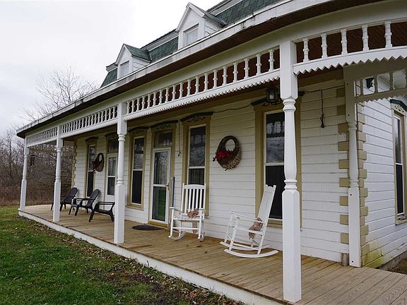 If you appreciate the charm of a historical home, you will love the story of this one! Originally Town Hall, this home was later moved to it's current location on a private 1 acre lot in Hagerstown. Just minutes from I-70 & St Rd 38 this home is convenient to several areas. The beautiful wrap around porch and custom detail sets this home apart. The main floor has a large open living room. The very spacious kitchen features an island, plenty of cabinetry, and access to the enclosed sun room. A laundry/utility room and a full bathroom with cast iron tub complete the first floor. Upstairs is a large master bedroom, very roomy bathroom, and two more bedrooms. Large two car detached garage. Don't miss your opportunity to own this charming home!