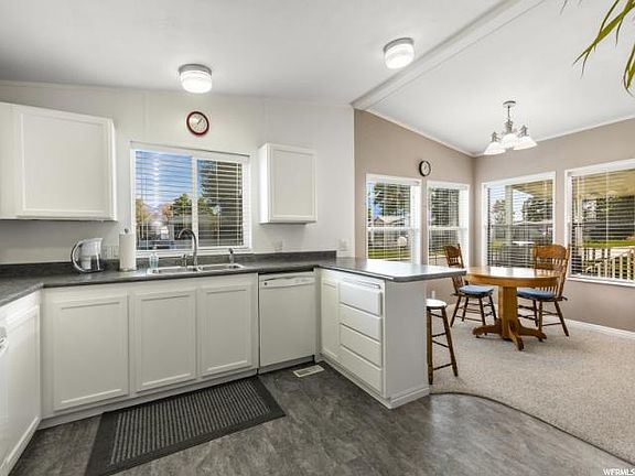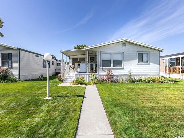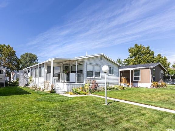 This beautifully updated mobile home in the popular Winchester Estates 55+ community is perfect for anyone looking to downsize. 1400 sq ft includes 3 beds/2 baths (3rd bedroom currently being used as a den) and a sunroom to protect your potted plants all winter long. Enjoy amazing east mountain views from your covered front patio over morning coffee while snacking on fresh raspberries from your own garden plot - a large shed has room for gardening tools & a workbench for projects. Main level living with wide 36" hallways; master bedroom has a step-in shower. Plenty of parking for you and your guests in 6 spaces along with a 2 space carport. Alley access to parking makes for uncluttered front curb appeal and means RV parking is available on site. Close to golf, shopping, and restaurants with easy I-15 and I-215 access. Community clubhouse will be completed in October, and a dog park is in the works.