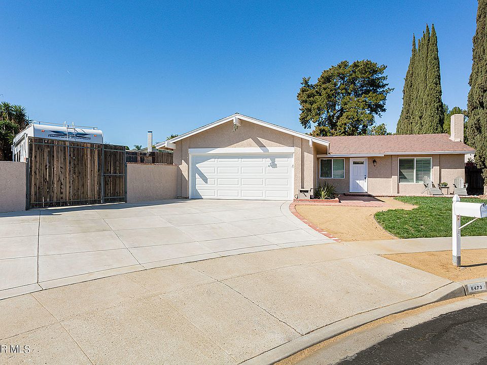 Welcome home to this single-story cul-de-sac beauty on an amazing 10K lot! This home boasts 4 bedrooms, 2 bathrooms with approximately 1,431 square feet of interior living space. Upon entering, you will notice the open floor-plan with a substantial living room equipped with a gas or wood burning fireplace. The spacious kitchen has plenty of storage and counter space with barstool seating at the expansive peninsula - along with a separate eating area for family gatherings. There are three traditional secondary bedrooms and a master suite with a slider to the backyard. Master bathroom has been updated with a tiled shower, newer vanity and updated lighting. Laundry area and storage room has been created in the garage for added convenience – can be converted back to 2-car garage. Other upgrades include living room shutters, recessed lights throughout and wood-like and tile flooring throughout. Entertainers backyard has plenty of space for a pool, putting green or your choice! Also, plenty of space for an RV, boat, or other recreational toys! Property is close to Moorpark College. Home is also close to schools, plenty of parks – including dog park - and shopping. Come and see this home for yourself!