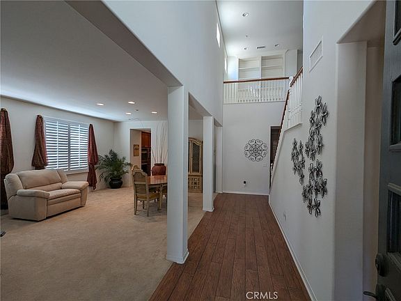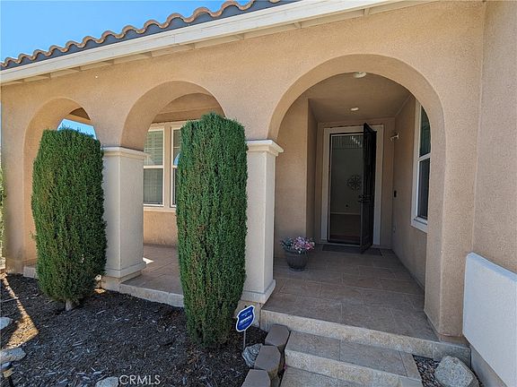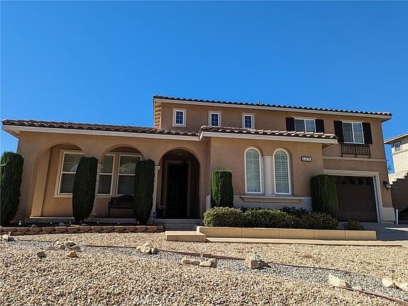 Seller is motivated and flexible with timing of sale. Immediate closing and move-in available. Existing furniture to stay. Quiet street facing wilderness area. Pleasing neutral interior colors throughout. Drought tolerant minimal water consumption landscaping. Huge backyard covered patio. Spacious kitchen with granite countertops, stainless steel appliances. Family room features a cozy fireplace, 65" flat screen within a custom built-in entertainment center, custom bar with a wine cooler - perfect for entertaining family and guests. Dining room furniture stays - ready for elegant meals. First floor bedroom adjacent to a full bathroom with shower. Large Primary Suite has mirrored walk-in closets, dual sinks and vanity, separate shower and relaxing jetted soaking tub. Many storage closets throughout. Three upstairs bedrooms and an additional full bathroom with tub/shower combination. Loft area features a built-in desk. Custom wood window shutters and recessed dimmable lighting create just the right atmosphere. Two HVAC units and remote control ceiling fans strategically located for energy efficiency. Alarm system and fire sprinklers for added peace of mind. Indoor laundry with laundry sink. The three car garage has even more storage cabinets and bonus ceiling storage. East Highlands Ranch HOA has well maintained common areas and seasonal events for everyone. Enjoy amenities including catch and release lake, swimming and wading pools, spas, tennis courts, basketball courts, walking track, softball field, multiple miles of walking trails, picnic and BBQ areas throughout. Resort living at an affordable price.