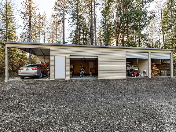 Grab your own little slice of tranquility! Country living on almost 6 secluded wooded acres with a yearly Creek in your own backyard! The long driveway leads you to the spacious 1-story 4 bed/ 2 bath home with an attached 2 car garage and an additional detached 24x57 garage/shop with 3 bays and a covered carport. Features of the home include vaulted ceilings, a nicely sized living area that includes a wood stove, floating vinyl plank flooring throughout, Kitchen has ample cabinets and counter space + a walk-in pantry. Enjoy the peaceful serene backyard with the sounds of the creek on the expansive concrete patio or around the fire pit and walk the trails down to the creek. Whole-home water filtration system included. Plenty of parking for RV's, boats, and more!