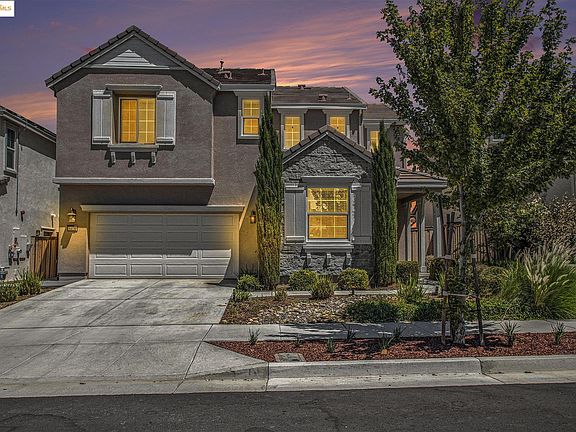 This is a stunning home in immaculate condition built by Meritage in 2019 in Tracy Hills. Nestled on a tranquil trailside lot, home is a perfect blend of privacy and serenity and amazing views of city lights at clear views. The home has a full bedroom and bathroom downstairs. A chef's kitchen with plenty of cabinet space and eating areas. The massive family room can entertain plenty of guests! Great upgrades throughout the home including top of line appliances. The primary bedroom has double closest and the primary bathroom has a shower and a separate tub. The other two upstairs bathrooms are nicely sized with a very nice double vanity hallway bathroom.