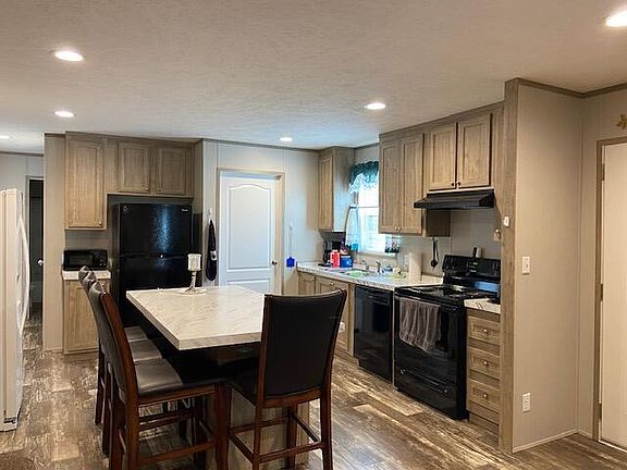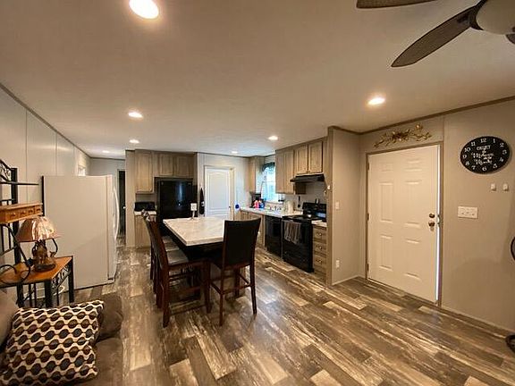 Almost new single wide mobile home sitting on 5.84 AC. This home offers 2 Bedrooms- 2 full baths, Livingroom that is open to the Kitchen with a large island- laundry room which includes a washer and dryer. The Appliances stay as well as some of the furniture items. Primary bedroom has a large walk-in closet; primary bath has double vanity- covered front porch to enjoy the sunsets- fenced yard for kids or pets. Also has carport and a shed that could be used for chickens-horses-goats or any farm animal you desire. Come check this one out, you will not be disappointed.