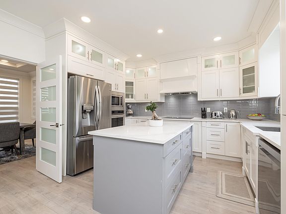 This beautifully renovated 8-BR, 5-Bath home is nestled on a tranquil cul-de-sac just a 9-minute walk from Hillcrest Elementary. The main floor boasts a modern updated kitchen, family and living rooms each feature a cozy gas fireplace. A convenient 1BR on the main floor adds flexibility. Upstairs, four spacious bedrooms, each with its own en-suite bathroom, offer comfort and privacy. The 3rd BR basement suite complete with its own laundry is ideal for generating rental income. Recent updates to entire home include, renovated kitchen with stainless steel appliances, a natural stone fireplace, crown molding, fresh doors, baseboards, laminate flooring, brand-new deck, brick Hardy board siding, paint, new fence, and more! Located near schools, shopping, and the New Skytrain corridor.
