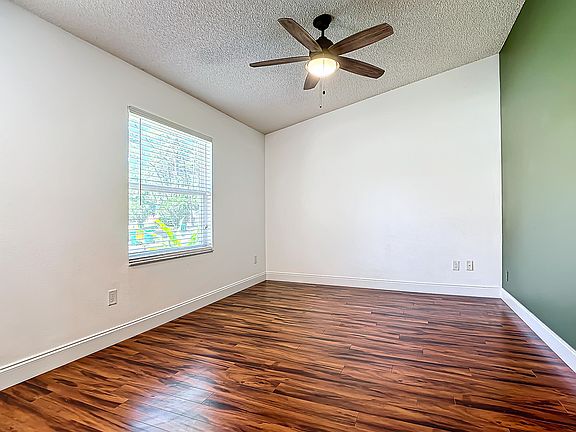 This 3 bedroom, 2 bath, 2 car garage with a spacious lot is in a desirable and friendly neighborhood. Inside you will notice the exotic floors, fresh paint, and high ceilings. An open floor plan with lots of natural light perfect for entertaining. The living room has a large picture window, accent wall and modern ceiling fan. The dining room has a modern fixture, large window and is next to the kitchen. The kitchen has white cabinets, granite counters, stainless appliances and overlooks the family room. The family room is spacious with French doors to the outdoor living space. The Primary Suite includes vaulted ceilings, a walk-in closet and private bath with updated vanity and a walk-in shower with custom tile. The secondary bedrooms are spacious with large closets and share an updated hall bath. The screened Outdoor living area is a wonderful oasis. The spacious yard has plenty of room for creating a firepit area, playhouse, or even the pool of your dreams. Most windows are updated.