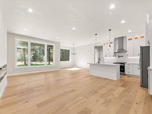 Beautiful new construction on 1+ acre in a quiet culdesac! This elegant one level home offers a zero-step entry with 4 bedrooms, 3 bathrooms, and over 2,000 sq ft of living space. The great room features wood-grain LVP floors, 10’ ceilings, and abundant windows that fill the home with natural light. Gorgeous kitchen features elegant quartz counters, custom cabinetry, and a premium stainless steel appliance package. The primary suite has access to the covered back patio, and boasts a spa-inspired bath featuring a soaking tub, custom tile shower, and a spacious walk-in closet. The 3+ car garage provides ample parking and extra space for a workshop. Nestled in the trees, the location offers a peaceful and private setting, while the 1+ acres allows room for a future shop, garden, or sport court. Just down the road is Long Lake Drive where you can enjoy your morning or evening walks while taking in the breathtaking views of Long Lake.