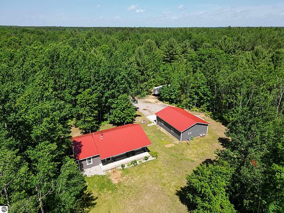 Introducing a stunning custom-built ranch home nestled on a serene 16 wooded acres, offering privacy and tranquility. Designed with an open concept, this home seamlessly blends spaciousness and modern living. Constructed in 2017, it boasts advanced energy-efficient features, including both spray foam and blown-in insulation, ensuring optimal comfort and reduced energy costs. The property includes a versatile 30x40 pole barn with 10-foot side walls, providing ample storage or workspace. Enjoy outdoor living on the wonderful covered porch at the back of the house, perfect for relaxing and entertaining while soaking in the natural beauty of the surroundings. For nature enthusiasts, thousands of acres of State land borders the north side of the property, offering endless opportunities for outdoor activities and exploration. This home promises worry-free living for years to come, combining contemporary amenities with the peaceful allure of wooded seclusion. One of the sellers is a licensed Real Estate agent in Michigan