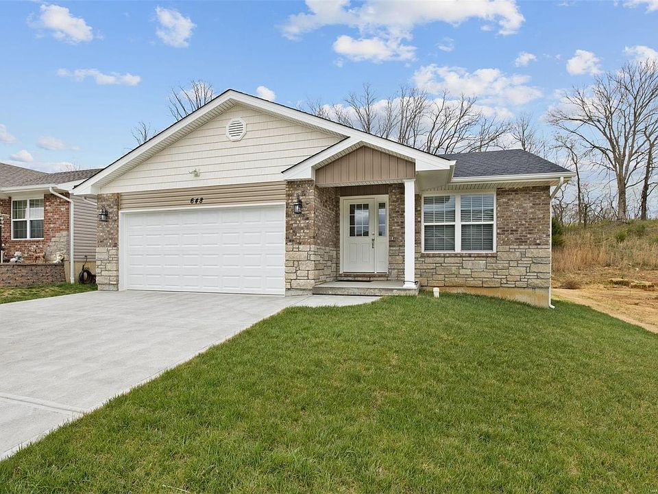This stunning BRAND NEW custom ranch is COMPLETE and ready for its new owner! Features include a combination brick and stone front, architectural shingle roof, deck with steps to below & patio, extra wide driveway, flat backyard, and we haven't even gone inside yet! The interior features luxury vinyl plank throughout the living room, dining room, kitchen and hallway, a custom kitchen with staggered cabinets, crown molding, stainless steel appliances, recessed lighting, wired and braced ceiling fans in all the bedrooms, main level laundry, 3 spacious bedrooms with extra deep closets and a full unfinished basement with rough in waiting for your creative touches!! Don't miss this opportunity to own an impeccably built home!!