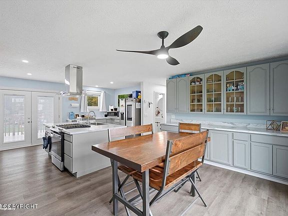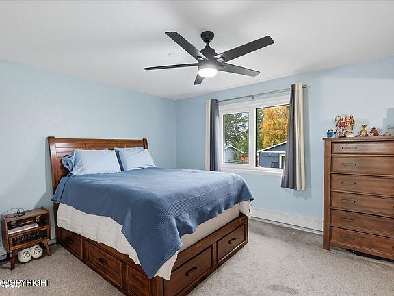 Set on a quiet cul-de-sac in the heart of Palmer with an easy Anchorage commute, this bright home brings mountain views front and back. Open kitchen with Formica Calacatta-look tops, soft-close island, waterproof LVP, and oversized owner's tub. Updates in '24-'25: all windows, carpet, driveway, fence, lawn, and exterior paint. Not in the boonies--just convenient!Interior Highlights: Kitchen: Recently remodeled with Formica Calacatta-look countertops (kitchen and laundry), soft-close island cabinetry with standard cabinets elsewhere, and an open layout with generous counter and storage space. Flooring: Waterproof luxury vinyl plank flooring throughout the main living areas for durability and style. Bathrooms: Updated less than a year ago, including the owner's bathroom jetted soaking tub. Windows: All windows replaced recently -essentially the entire home's window package is new. Carpet: New carpet installed throughout the home in 2024. Exterior Improvements: Driveway: Fully redone in 2024. Front Lawn: Installed new lawn in 2025. Fence: Front yard fencing added in 2024. Paint: Exterior of the house repainted in 2025. Layout and Space Style: Split-entry design with open flow between living spaces. Living Area: 1,274 sq ft above grade with an additional 1,188 sq ft finished basement. Bedrooms/Baths: Total of 5 bedrooms and 3.5 bathrooms Garage/Storage: One-car garage plus two-car driveway. Quiet cul-de-sac location with mountain views front and back. Easy commute to Anchorage not in the boonies, yet close to everything Palmer offers. Multiple living rooms and a large number of rooms providing flexible space for work, hobbies, or guests. Updated kitchen and bathrooms less than a year ago, giving a fresh and modern feel. Nearly all windows replaced, enhancing energy efficiency and natural light. This home was transformed from a dated property into a fresh, highly functional space over the last year. The combination of recent updates, convenient location, mountain views, and generous layout makes it a standout in the Palmer market.