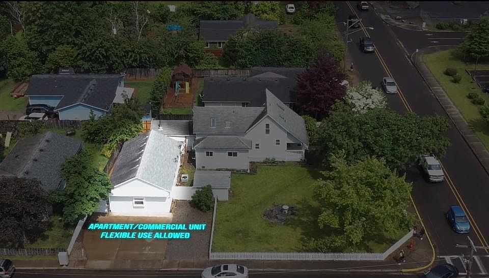 The house is two stories, 3 BR 3 Bath. The detached office/out building has 4 rooms and one bath. The property is zoned Residential Commercial.