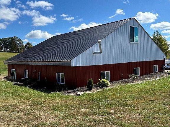 Newer ranch style home constructed with insulated concrete (FOX Block) walls, natural gas, and radiant heat for exceptional efficiency. Main level features 2 bedrooms, 2 full baths, and laundry for convenient first-floor living. The second floor offers additional space suitable for bedrooms, office, or storage. Set on 17 acres with 15 acres of workable fields and a small pasture with run-in shelter. Property includes a 30-amp RV/trailer hookup with water and cleanout, plus space for an additional driveway if desired. Check out the attached virtual tour and floor plan.