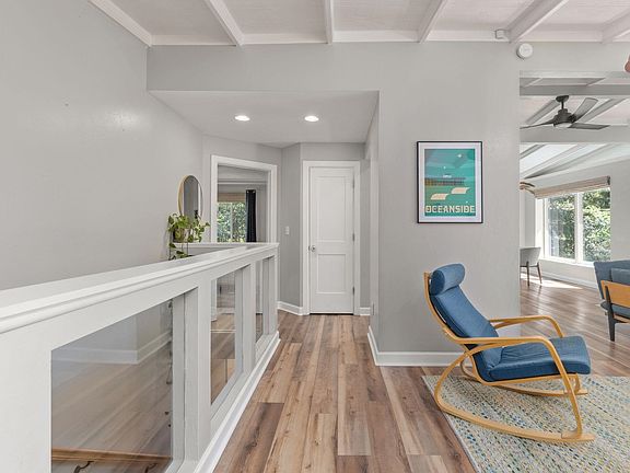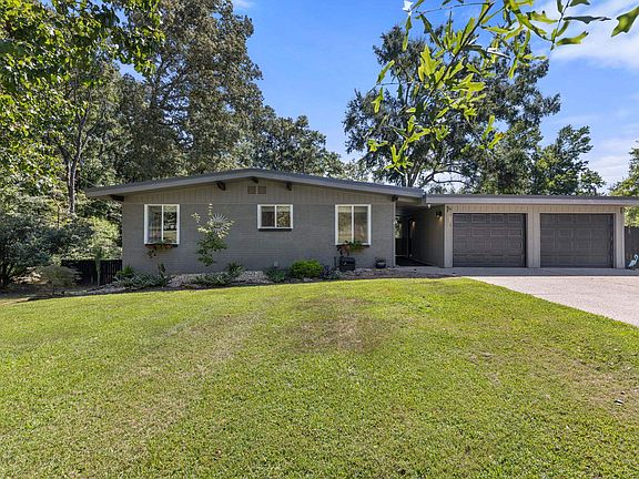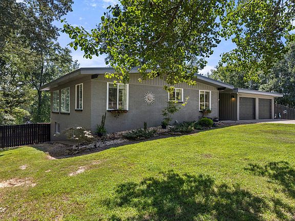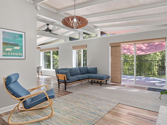 Step inside this inviting mid-century modern home, where clean lines and natural light set the tone. The living room features vaulted ceilings with exposed beams, a cozy fireplace framed by bold color. There is a new roof with a transferable warranty. A wall of picture windows in the dining area offers peaceful views of the surrounding trees, creating the perfect backdrop for everyday meals or quiet mornings with coffee.The main-level primary suite includes a tile shower and double sinks, while the lower level offers two bedrooms and a rec room. With two fireplaces, a deck, and an above-ground pool, this home is perfect for relaxing or entertaining in your serene oasis.