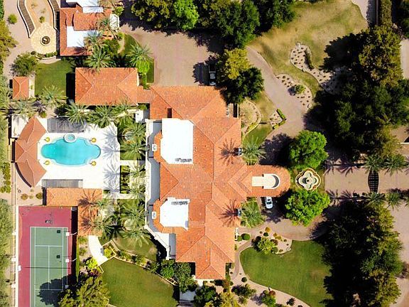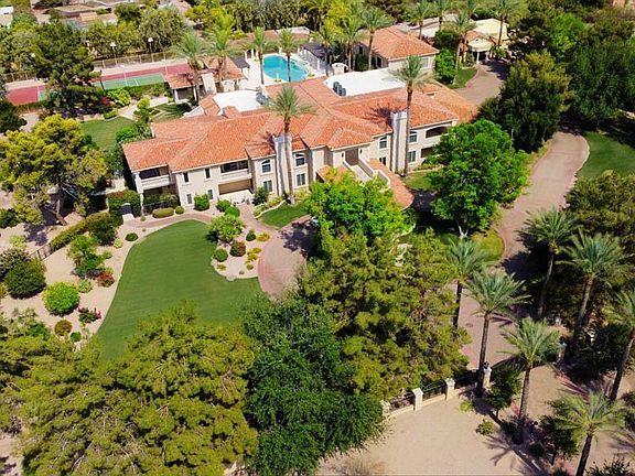 One-of-a kind Private walled and gated Estate in the center of Paradise Valley not far from the new Ritz Carlton. LOVE the home or CREATE YOUR DREAM ESTATE on this SPECTACULAR 3.25 acre lot. Interior and exterior painting done early 2022. Renovated in 2012 (by previous owners) with well made custom cabinetry, marble flooring, and high end appliances/fixtures. Estate includes a newer 2bed/2bath Guest House, FULL-SIZE INDOOR BASKETBALL Court, Lighted Tennis Court, Swimming Pool+Spa, Vegetable garden, Citrus grove, Home Theater, Wine Cellar, garage parking for 8 + MORE. Mountain Views and Immaculate mature landscaping with custom fountains + a private well to water the grounds! Very rare with 2 gated entries to the estate. Possibility to split lot. Don't miss this unique opportunity.