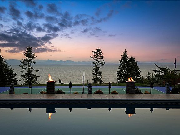 Settled on a 2.47-acre oceanfront parcel, this 6589 sqft home has numerous conveniences and high-end finishes. Inside the 4-bed, 6-bath residence, you will find finishes like Brazilian cherry hardwood, heated tiles and basement, coffered ceilings, gas fireplaces, quartz counters, turn & tilt windows, and impressive natural lighting. Dramatic vistas dominate. Interior amenities include: sound insulated media room, games room, gym and sauna, wine cellar, formal office, separate dining room, ensuites for every bedroom, chef’s kitchen and 3-car garage. Outside, a freshly painted tennis / pickleball / bball / ball hockey court, putting green, oversized chess, covered deck and patio, hot tub, 8’ pool, sheds, access to ocean, fenced yard, gated entrance, fire columns, landscaped throughout. Infrastructure: generator, security system, 2 wells, built-in bbq, 400-amp service, electric charger roughed in, electric heaters, and speaker system. This needs to be seen in person. Book a showing today.