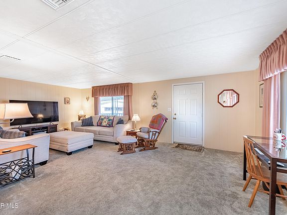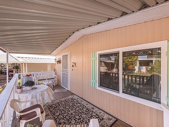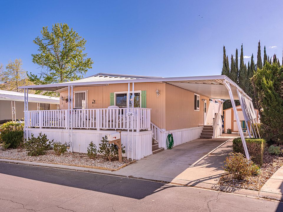 Spacious updated 2+2 home in desirable location! This immaculate home has a great floorplan starting with a front covered patio, large living room and dining area with a lot of windows and light, well designed kitchen with breakfast bar, indoor laundry room, pantry, spacious hall bedroom with lots of closet space, hall bathroom with tub/shower, oversized master bedroom with walk-in closet and private bathroom. Upgrades to the home include dual pane windows, updated kitchen, newer carpet, recently remodeled bathrooms, steps to the front porch and the side entrance are new, and more. There is a large storage room at the back of the driveway, and the covered driveway easily accommodates 2 cars. The charming front covered patio adds some nice outdoor space. This home is in a great location in the park close to the community pool, spa and clubhouse, with plenty of guest parking close by and has nice mountain views. The park is well kept and in a great location, close to shopping, parks and restaurants.