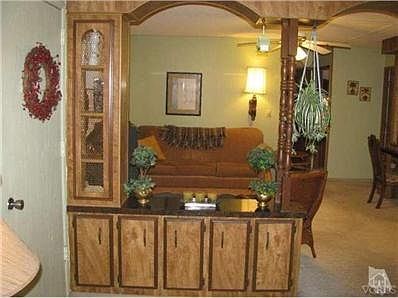 Beautiful location in secluded Susana Woods Mobile Home Park, at the far east end of Simi Valley. Home is located all the way to the rear of the park. Very private. Large lot. Some deferred maintenance. Large inviting porch in front. Enter to formal living room, formal dining room. Cozy kitchen, indoor laundry area. Two bedrooms, two baths. Master suite is expanded and features a sliding glass door to the patio. A gardener's delight. Two sheds included. Club house has 2 billiard tables, 2 card tables. Pool is heated 6 months/year, spa is heated all year.