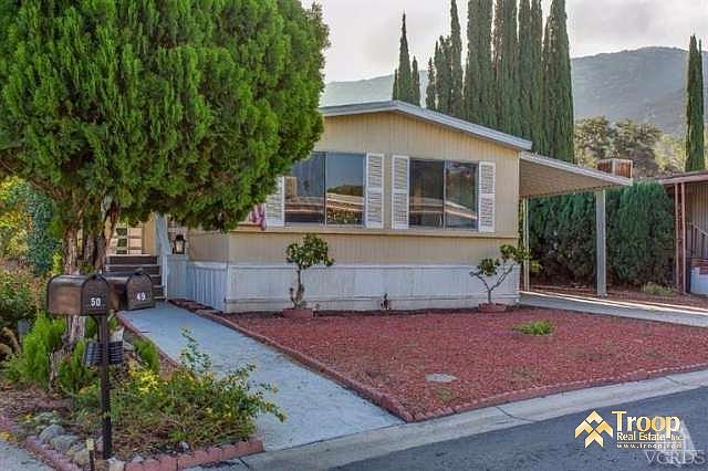 Super clean, move-in-ready. Two bedroom, one bath Mobile Home. 800 sq ft. New interior paint throughout. Seller has spent nearly twenty-thousand dollars in recent repairs and upgrades. Unit was recently re-leveled. New carpet in living room, dining room, hallway, two bedrooms, plus closets. New vinyl flooring in kitchen, laundry room, bathroom, and entry way. Swamp cooler has been totally refurbished with new motor. Roof recently inspected and tuned-up. New aluminum skirting. Drought tolerant landscaping. Outdoor patio area can be your secret garden. Great location in one of Simi Valley's most beautiful mobile home parks. Magnificent mountain views.