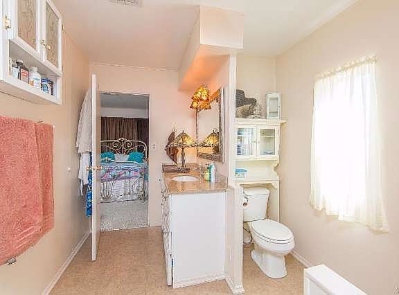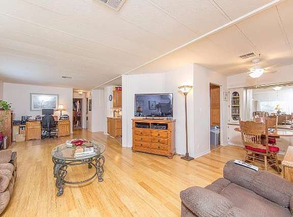 Attractive open floor plan in this Mobile home built in 1977. Lots of updating has happened here. Wood laminate flooring, updated windows, updated kitchen and bath counter tops. Indoor laundry area. Formal dining area. Living area is spacious. Kitchen opens into living area. Ceramic tile flooring in kitchen. Large master bedroom with super-sized master bath. Hall bath and secondary bedroom too. Property is located in the east end of Simi Valley in one of Simi's most beautiful mobile home parks. Park approval required.