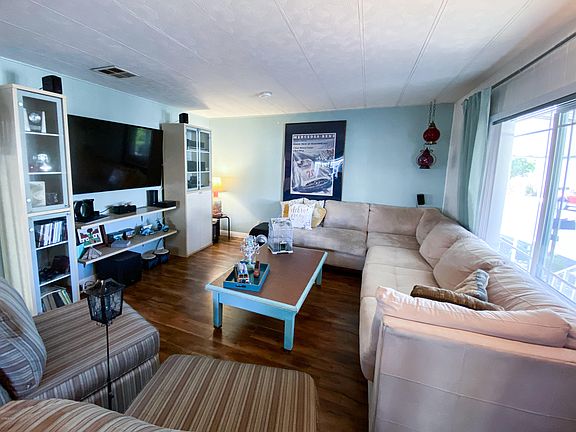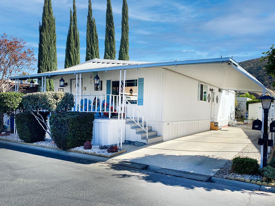 Welcome to this Double-Wide Mobile Home which offers an open Floor Plan, 2 Bedrooms & 2 Bathrooms, Indoor Laundry, Dining Room, Living Room. The master bedroom is very large and has walk in closet. Newer double paned windows, and upgrades in the kitchen make this home move in ready. Included is an earthquake bracing system, roof wrap and copper plumbing throughout and brand new water heater. The covered patio offers views of the beautiful mountains. Community offers pool, spa and recreation room.