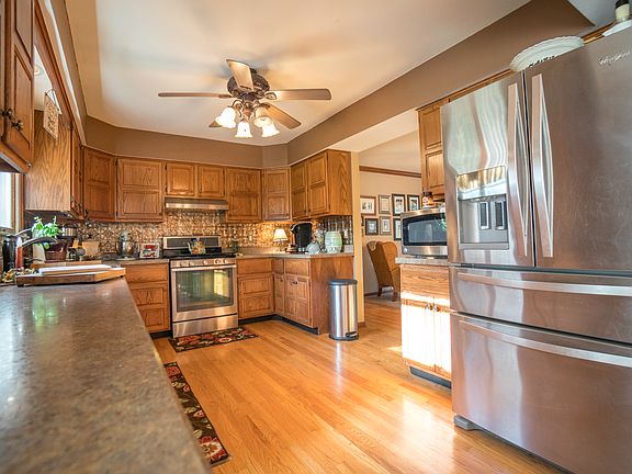 Impressive compound encompassing 3.11 acres of manicured grounds across the street from the state park. Located minutes from I-57 and I-55. Featuring 48x100 pole building complete with with a finished office, reception area, bathroom, finished workshop with concrete floors and four 16' overhead doors. The outbuildings parking lot is commercial grade to withstand 80 tons of weighted axle. Beautiful 4 bedroom Victorian complete with a true wrap around porch. Traditional floor plan.. hardwood floors, wood burning fireplace, full finished basement. Incredible feel throughout this home. Strategically placed landscaping to maximize outside space. Brick paved patio, stone walkways. Pond with natural plant life. There is a peace about this home, the uninterrupted daily views of sunsets and sunrises only adds to this perfection. Check out the video tour and drone footage of this home on YouTube!