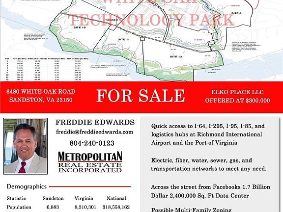 Great East End Location. Water, Sewer and Electric in the street. Highest and best use would be single family residential. The most aggressive zoning would be Office/Office Service, Daycare, Medical, Dental, Legal etc….. On Elko Rd near the Millions of square feet of office in White Oak Technology Park. Seller acknowledges that the sale is subject to successful zoning. See the supplement section to view plats and other info.