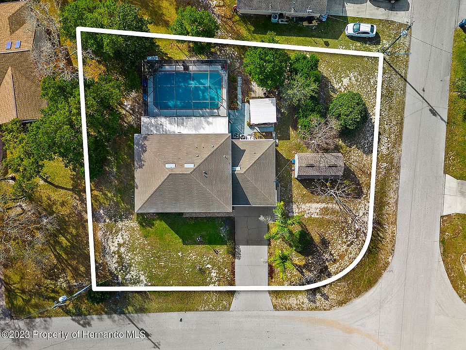 This 2 Story 3 Bedroom 3 Bathroom Home is located on a fantastic corner lot with a extra large pool in the heart of Spring Hill. This has all the space you need for a comfortable living . As you enter the front grand entrance , you are greeted with the vaulted view to the second floor, with tall ceilings that provides a fantastic greeting to the entrance of the house. The Main living area has plenty of space from one side of the house clear into the kitchen to host many gatherings. Don't forget to enjoy this awesome 9 1/2 foot deep pool and a nice that has a self cleaning and self emptying feature that will make maintenance so much easier . Don't forget to make sure those busy days end with a nice trip to the hot tub spa and enjoy some relaxing time right at home. Going upstairs all of the bedrooms are located as a split floor plan including a nice loft area which makes a perfect hangout spot . The 2 car garage has plenty of space with an added storage room . The Shed on the side of the home does convey and along with a bbq patio area perfect for grilling out with family and friends.