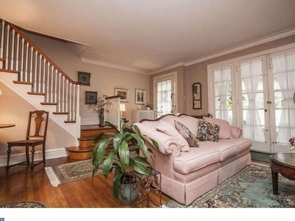 Don't miss out on this immaculately kept home on a tree-lined street in the Overbrook Farms neighborhood! Walk up the front brick walkway, through the English garden-like landscaping and sculptured hedges, to the front door. Enter inside to the large, open living room with French door accent, a working fireplace, hardwood floors and cove molding. To your left you will find the charming and inviting gazebo shaped enclosed porch. Continue through the living room to the dining room which is adjacent to the bright, updated kitchen. Through the kitchen on your left you will find a relaxing deck with privacy walls and to your right, the entrance to the basement. The basement is furnished as a sitting room/ den with built in cedar closets, utility enclosures, a half bath and laundry area with ample storage. The basement level leads to a small paved patio, driveway, well manicured garden and garage which has been lined with shelving along the perimeter, as well as a non-permanent island for work or projects.The second floor also has hardwood floors throughout, cove moldings and an updated full bathroom. The large front room has three windows and a large deep closet. It is currently being used as a den/ home office. The second bedroom is also spacious with an extra large closet. The third bedroom is currently being used as a "dressing room"/ walk-in closet, but can easily be turned back into a bedroom. This home is in a great location, still within city limits, but close to nearby suburbs as well as major highways and bus and train transportation. This home is also steps from nature trails and streams in Morris Park which is part of the Fairmount Park Commission's territory.