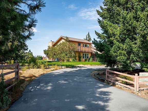 Comfort, and character in this delightful 3-bedroom, 2-bath home on 1.43 acres. Peaceful neighborhood just minutes from Bend. Home sits at the top of a gradual incline that enhances mountains views. Living room with wood-vaulted ceilings and a beautiful fireplace with insert—perfect for cozy evenings. The kitchen features a breakfast nook, while the large dining area makes entertaining easy. Enjoy the outdoors on any of the three decks. The natural surroundings enhance the home's charm. There's space for two horses or gardening with irrigation as a bonus. Professional Photos Coming Soon.