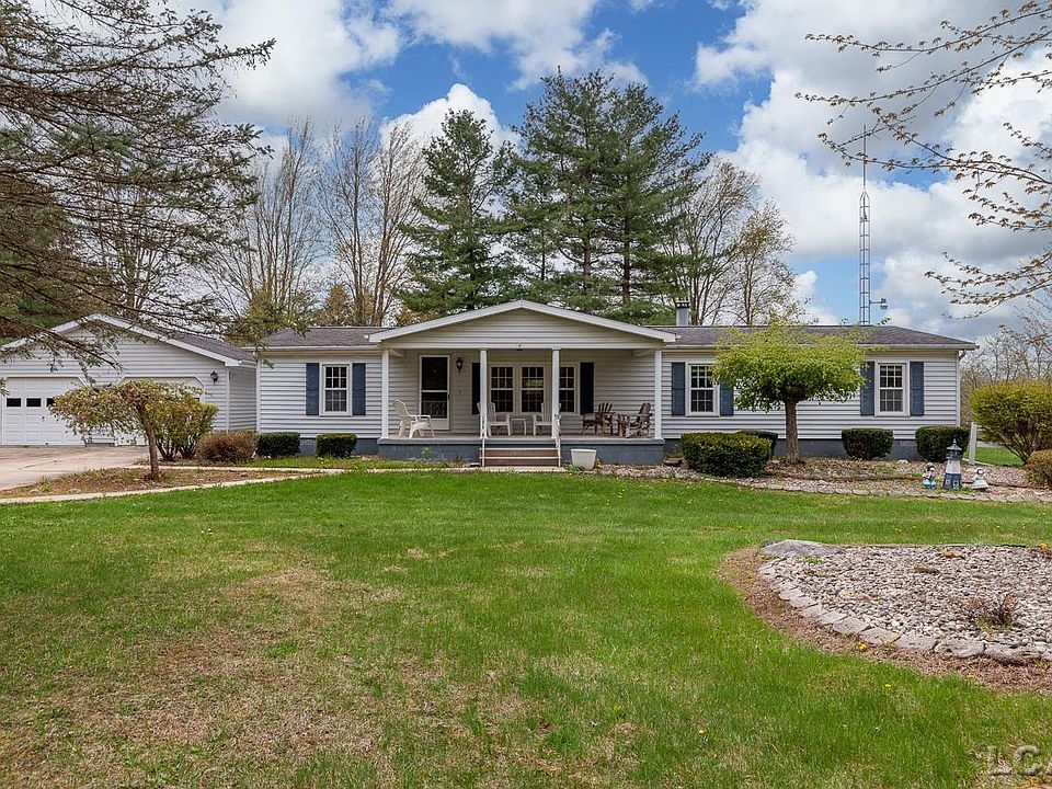 CITY LIFE or COUNTRY LIFE- You Make The Choice! This very well maintained ranch home sits on a beautiful 3 acre country lot. Pine lined drive, flowering trees and lot of perennials. You will appreciate the large living room, open kitchen & dining area with a 2 sided gas fireplace that opens to a cozy family room. New laminate flooring flows through the living room dining room and master bedroom. New vinyl tilt in windows for easy cleaning. This 3 bedroom 2.5 bath ranch features a great front porch, slider leading to a private back deck, a 2 car garage & a storage shed. Move right in! Immediate possession!