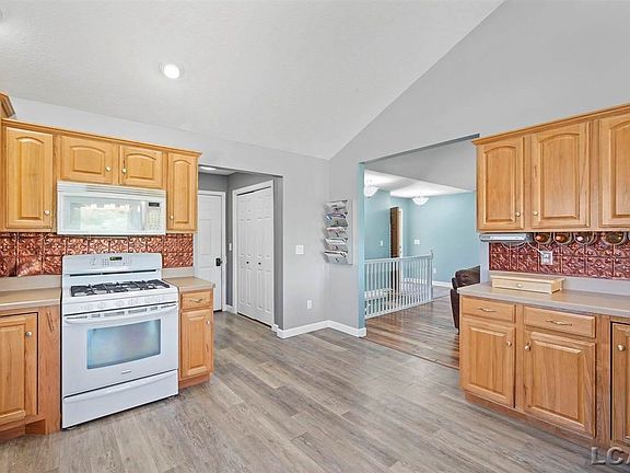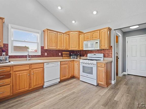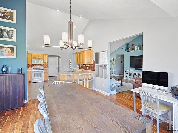 This gorgeous ranch with vaulted ceilings has plenty of space for living and entertaining both indoors and outdoors. This home features 3 bedrooms with a 4th non-conforming bedroom in the finished basement. The basement also has an office/play room, large rec room, full bathroom and a kitchenette with an oven, beverage refrigerator, and freezer. Situated on just over an acre, the back yard is completely fenced in. Enjoy relaxing on the amazing deck - the outdoor TV and hot tub stay! There is plenty of room for cars and storage with the 3 car garage and additional 2 car detached garage. All of this sits right across the street from a beautiful view of the golf course!