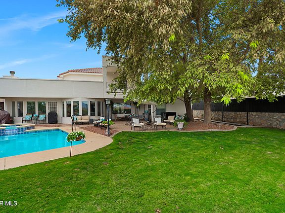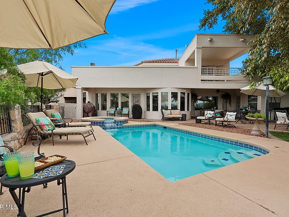 Step into elegance with this unique Park Hills Jewel. Stunning 2 story home offering 4024 sqft of luxurious living space. 5 BR & 3 living areas. Perfectly situated in the exclusive Park Hills community. This home combines sophistication, comfort, & breathtaking mountain views. From the moment you enter, you are greeted by a grand foyer with soaring 20' ceilings & LR has dramatic large glass window that frames the serene backyard. Gourmet chef's kitchen with custom cabinetry, Wolf appliances, & built-in beverage refrigerator . Elegant DR with private China closet. Butler's pantry has a second dishwasher with room for a wine fridge & 2nd refrigerator. Spacious primary suite with 3 closets. Spa-like primary bath with his/her vanities, steam walk-in shower & jetted sauna. Private guest room downstairs Upper level with 2 BR's plus upstairs den w/balcony. Parklike backyard w/pool & raised spillover hot tub. (Amenities: 4 car garage, granite tops, 12 to 20 ft ceilings, & travertine/wood flooring)